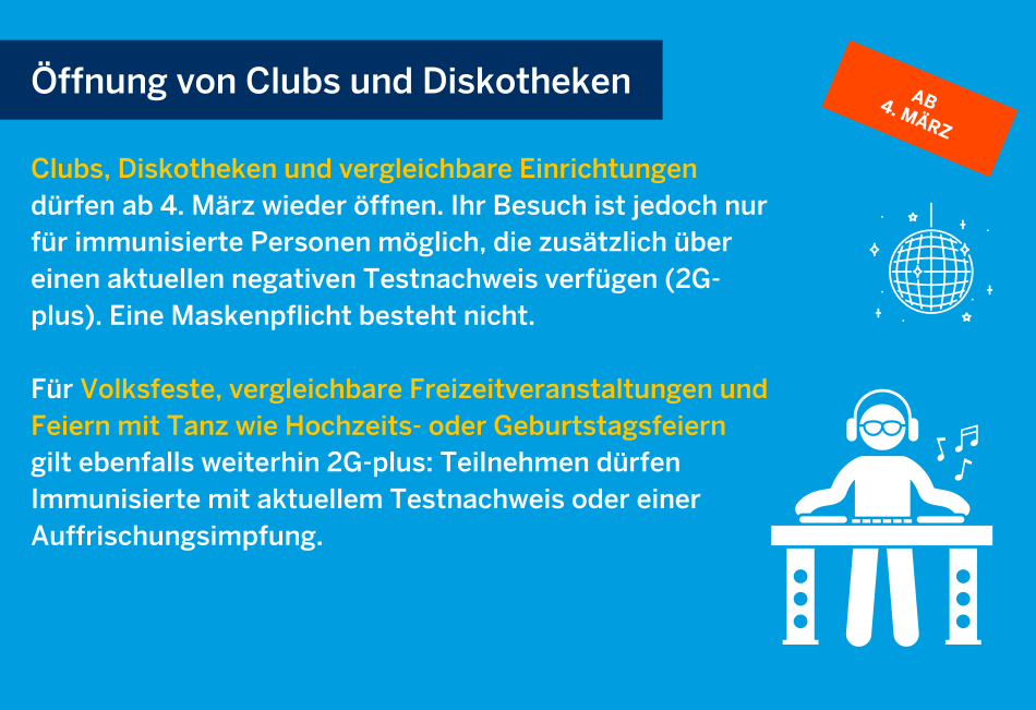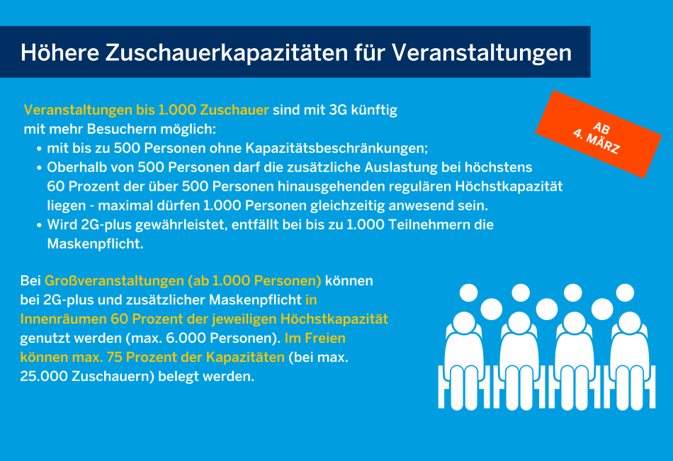 "Weitere Lockerungen..." - In einem zweiten Schritt hat das Land NRW die Regelungen der Corona-Schutzverordnung erneut angepasst. Was ab dem 4. März gilt, kann in den folgenden Übersichten nachgelesen werden.