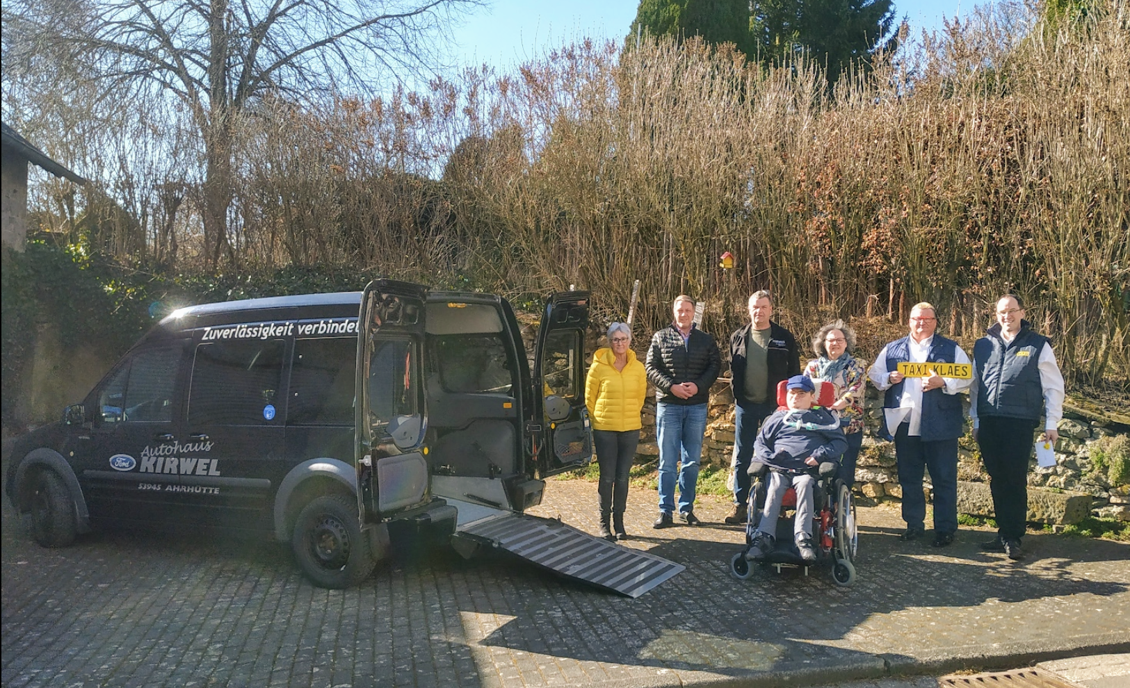 Auch Frank Bertram und Thomas Hellenthal, die seit dem 01. 02.2022 die neu gegründete GbR "Taxi Klaes – Inhaber Bertram-Hellenthal GbR" an der Ahrquelle in Blankenheim mit einem Fahrzeugpool von 5 Autos betreiben, fanden die Idee der ehemaligen Firmeninhaberin wunderbar, den rollstuhlgerechten Ford künftig Simon zur Verfügung zu stellen.