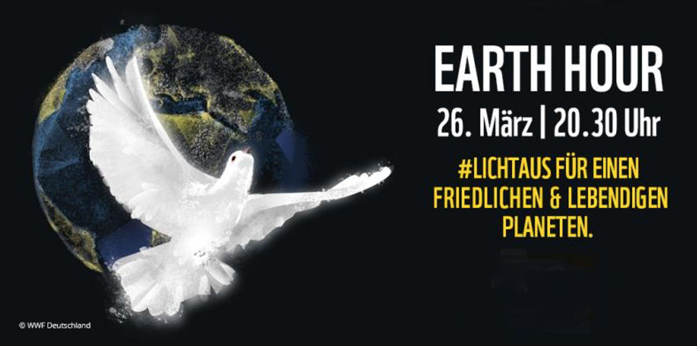 In diesem Jahr findet am 26. März die #EarthHours um 20.30 Uhr statt, mit der diesmal zudem ein gemeinsames Zeichen für Frieden in der Ukraine, in Europa und auf der ganzen Welt gesendet werden soll.