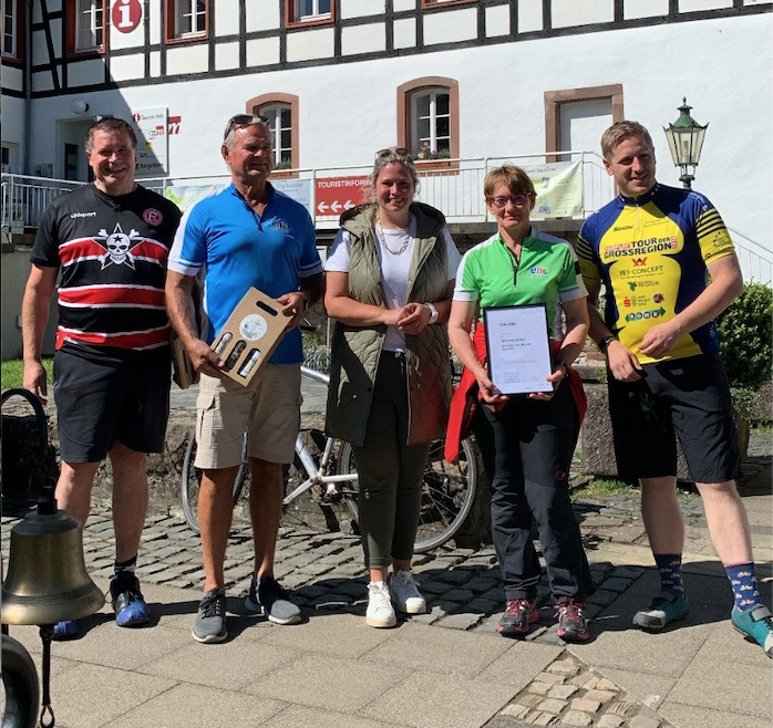 „Ehrenamt des Monats” - so eine Auszeichnung, die der Kreis Euskirchen seit Januar 2021 vergibt. Nach Simon Hellenthal im September 2021 ist im Rahmen der Eröffnung der diesjährigen „Tour de Ahrtal” auch Simone Böhm im Beisein von Bürgermeisterin Jennifer Meuren, Altbürgermeister Rolf Hartmann und Altlandrat Günter Rosenke von Landrat Markus Ramers für ihr ehrenamtliches Wirken mit der Auszeichnung "Ehrenamt des Monats" gewürdigt worden. Herzlichen Glückwunsch!