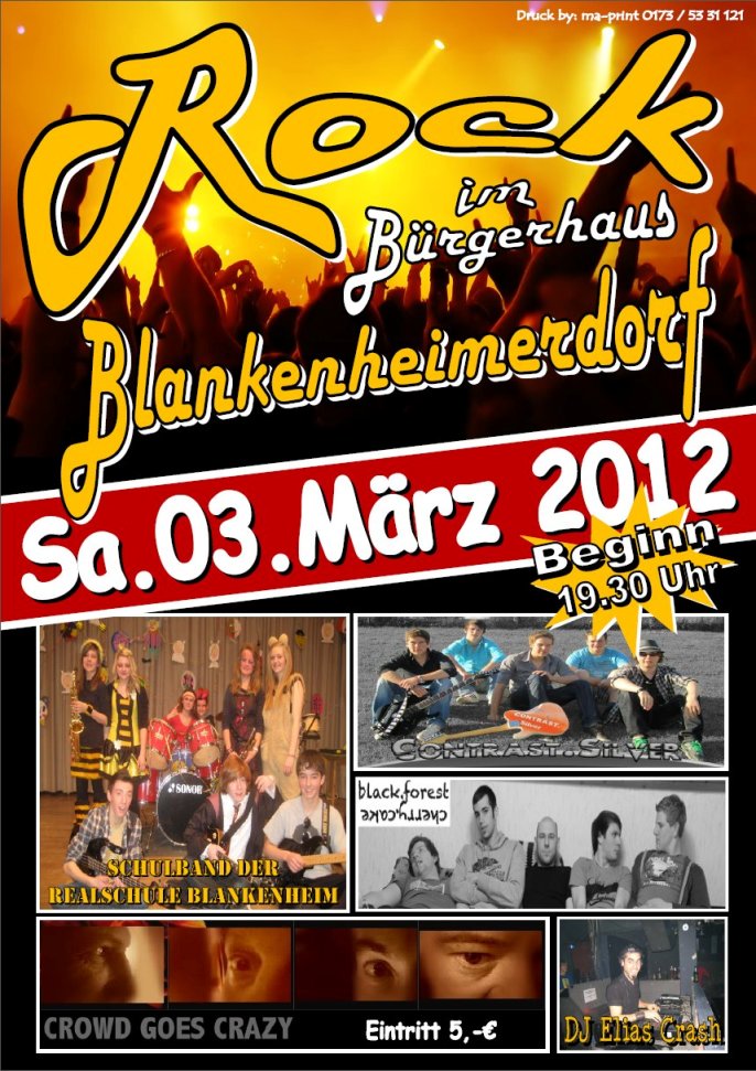 Den Anfang machen am Samstag, den 3. März 2012 „Contrast Silver (www.contrastsilver.de) bei „Rock im Bürgerhaus Blankenheimerdorf“.