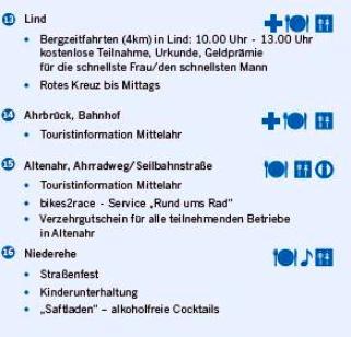 Die Veranstaltung hat sich überregional einen Namen als „DAS Radevent in der Eifel“ gemacht. Der Radaktionstag auf dem Ahr-Radweg besticht nicht nur durch seine wundervolle Naturlandschaft, sondern auch durch zahlreiche Aktionspunkte entlang der Strecke mit einem bunten Unterhaltungs-, Musik-, Gastronomie- und Informationsangebot für Groß und Klein.