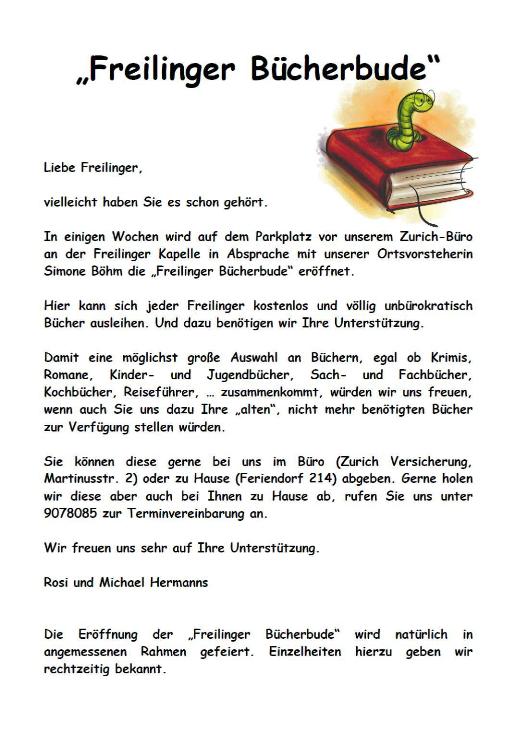 Bücherspenden für neue "Freilinger Bücherbude" gesucht