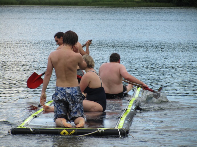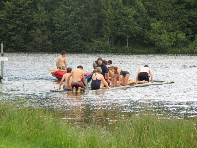 Besonders getestet wurde an diesem lauen Sommerabend in angenehmer Wassertemperatur aber vor allem die Tragfähigkeit des Steges, die seitens des Herstellers mit 95 kg pro m2 angegeben wird. Und eines lässt sich nach diesem Übungseinsatz jedenfalls sagen : der Rettungssteg hält wirklich einiges aus !