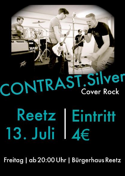 Im Rahmen der Kirmes spielen am Freitag, 13. Juli ab 20.00 Uhr Contrast.Silver im Bürgerhaus Reetz. Und da will die Band "richtig" abgehen!