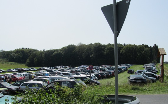 So parkten denn auch die Besucher ab dem frühen Mittag schon auf sämtlichen Feldwegen und seitlichen Zufahrtsstraßen. Und wer dann endlich einen Standort für seinen fahrbaren Untersatz ergattert hatte, musste sich dann auch noch einen freien Platz auf der Liegewiese