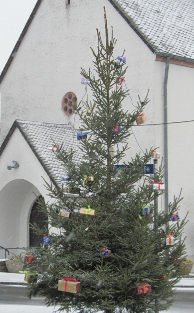 Diesmal hat man sich etwas ganz Besonderes einfallen lassen. Auf Anregeung der Ortsvorsteherin hat der Feuerwehrnachwuchs unter Anleitung von Stefan Franzen und kräftiger Hilfestellung von Kira Vogelsberg über 25 kleine und große Päckchen in buntes Papier verpackt, mit denen der Weihnachtsbaum zum ersten Advent verschönert worden ist.