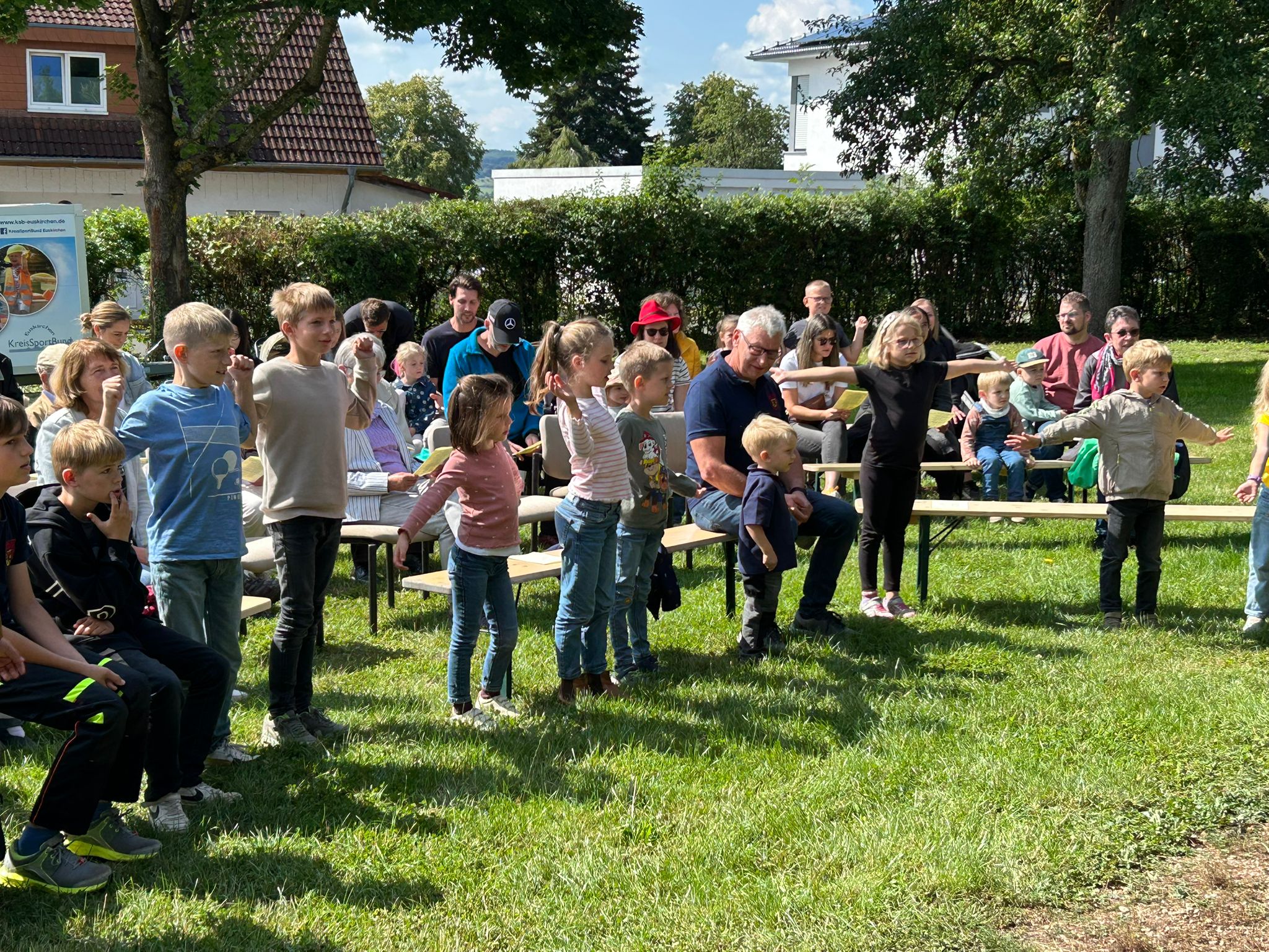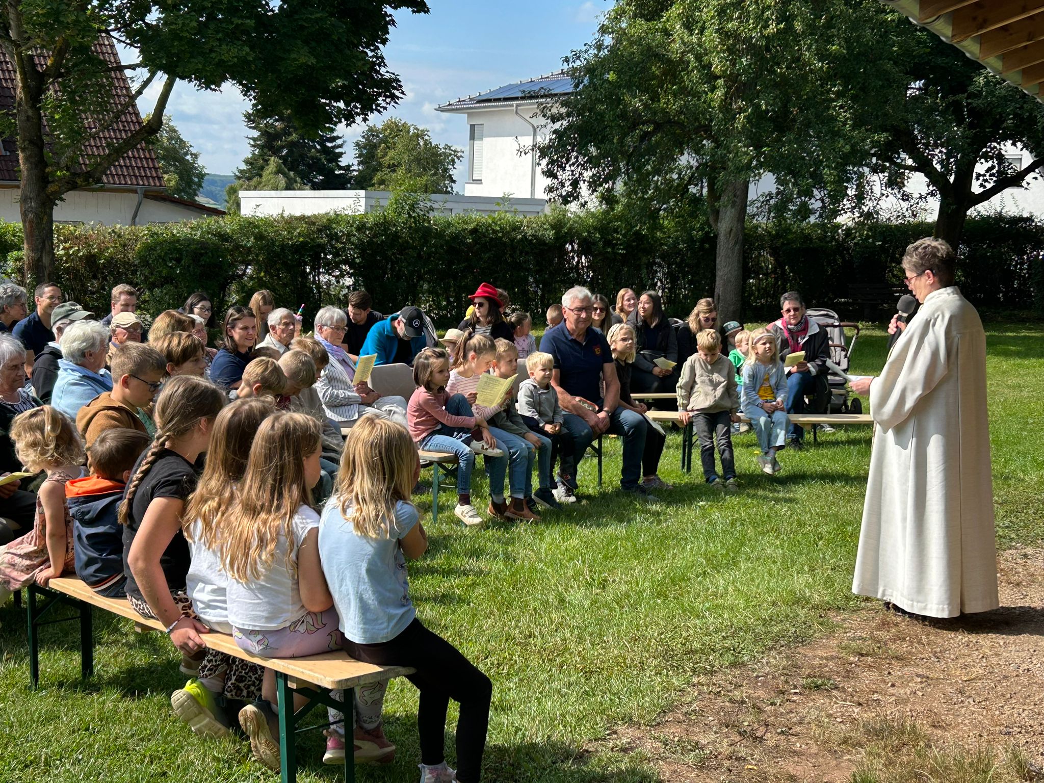 Vormittags konnte man auf dem Dorfplatz einen Familiengottesdienst erleben, für den die Kinder zusammen mit Claudia Lange bereits einige Tage zuvor fleißig Vorbereitungen getroffen hatten.
